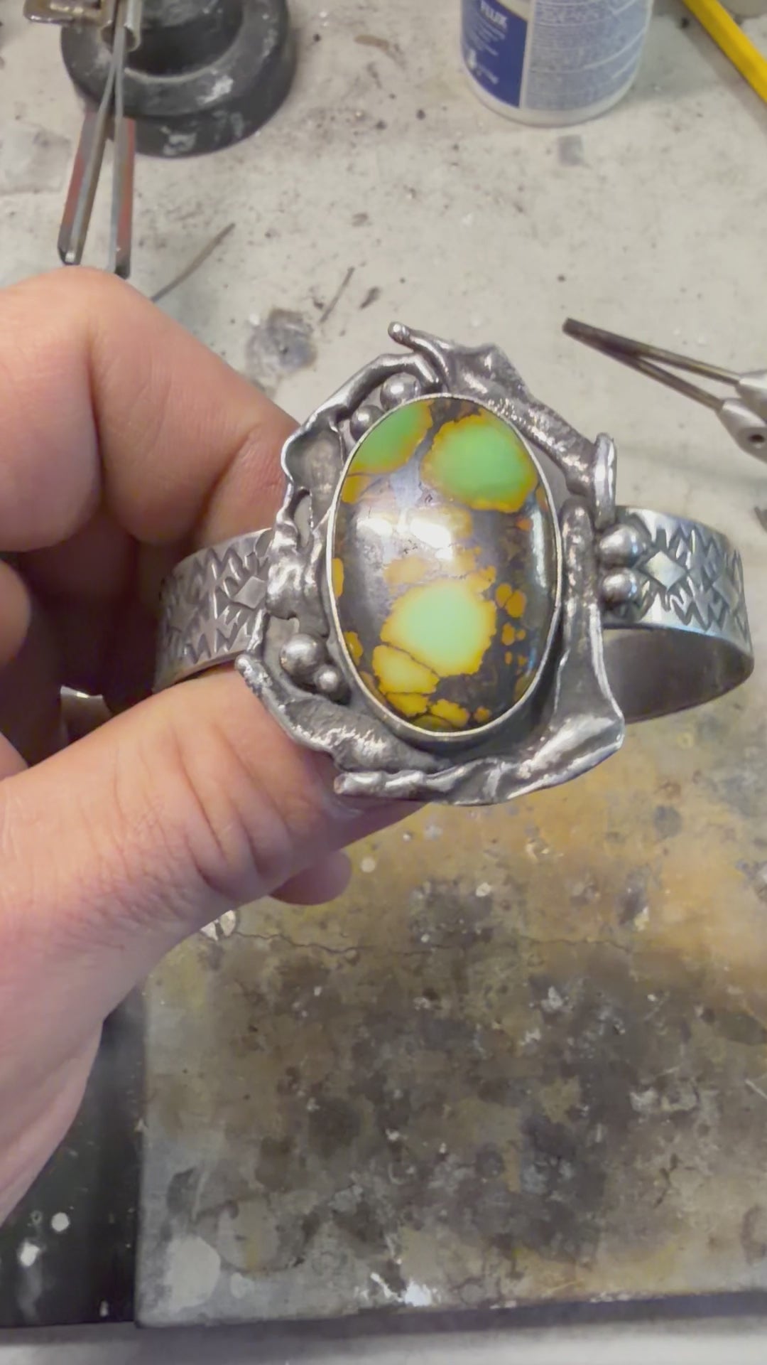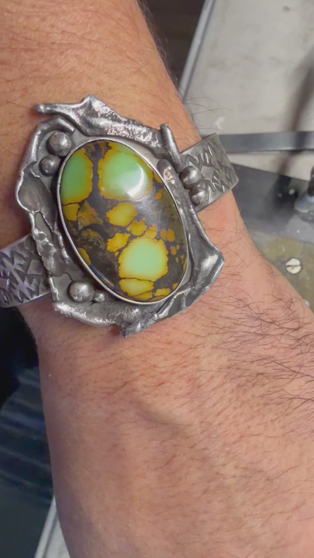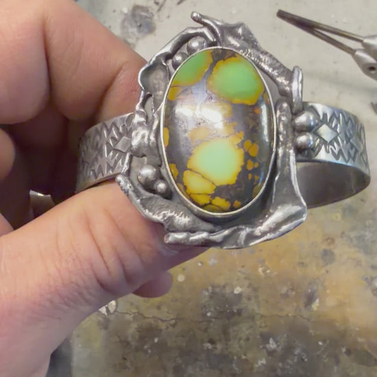 Handmade sterling silver and Hubie turquoise cuff. 6 inches